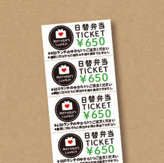 弁当チケット2冊につき日替弁当1食”無料券”を1枚お付けします。ご注文はホームページ内MOTHER'S SHOPにてお願いします。この機会に是非どうぞ♪